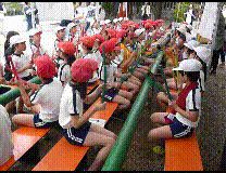 3年生は、地域にある神社に和太鼓体験に行きました。阿部野神社では、神社に伝わる太鼓の話を聞き、全員で練習した後、衣装を着て和太鼓体験をしました。
