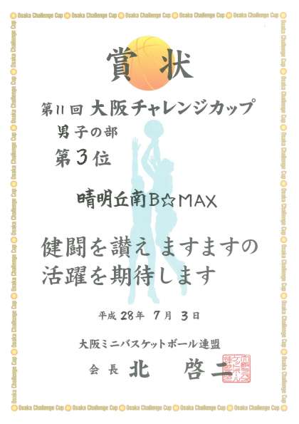 本校の体育館を中心に活動しているミニバスケットボールのチームが、7月3日に行われた「大阪チャレンジカップ」で第3位の成績を取りました。