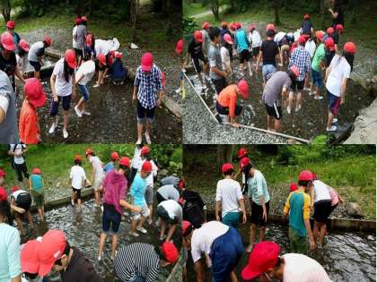 林間学習 5年 2日目 魚つかみ