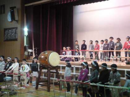 三年生は、「祭り」をテーマに、群読、歌、太鼓演奏を行いました。社会科で学習した祭りについて発表したり、阿部野神社で教えていただいた太鼓は、竹太鼓に締太鼓、大太鼓を加えた迫力満点の演奏でした。