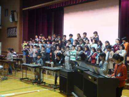 4年生は、『わくわく地球学びたい』として、今年になって学習したゴミ・水・生き物・森について劇形式で発表しました。浄水場への見学や、「水育」出前授業のことを分かりやすく発表しました。合奏は、映画「メリーポピンズ」の「スーパー カリフラジリスティック エクスピアリ ドーシャス」でした。