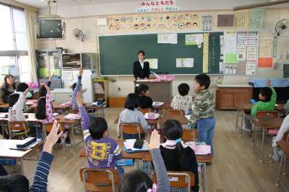 12月3日(火)1年生で国語科の授業研究会を行いました。「おとうとねずみチロ」の物語を登場人物の気持ちを想像しながら読みました。本読みは、大きな声で上手に読むことができていました。発表も、友だちの意見をしっかり聞き、自分の意見を付け足したり、なるほどと思ったことを理由をつけて説明したり、今年の4月に入学してきた児童たちとは思えない姿を見ることができました。