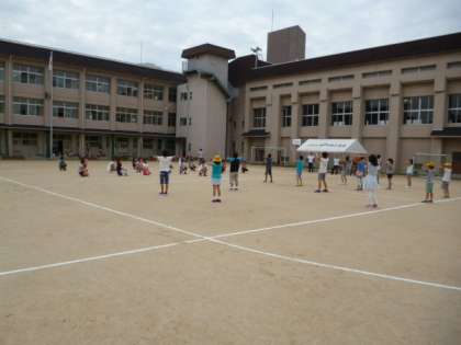 今日は運動場で、応援団の朝練をしました。外での練習を始めたばかりなので、少し戸惑っていました。