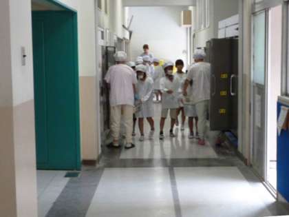 毎日、給食当番が給食室に給食を取りに来て、教室で配膳をしてます。階段で大きなおかずを運ぶ時は、こぼさないように気を付けています。