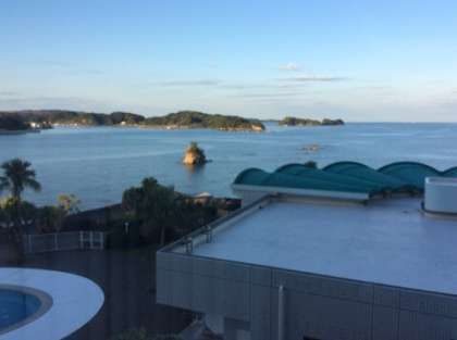 今朝は、快晴です。部屋から見える景色は、絶景です。朝の集いを終えて、朝食をとります。朝食も豪華です。
