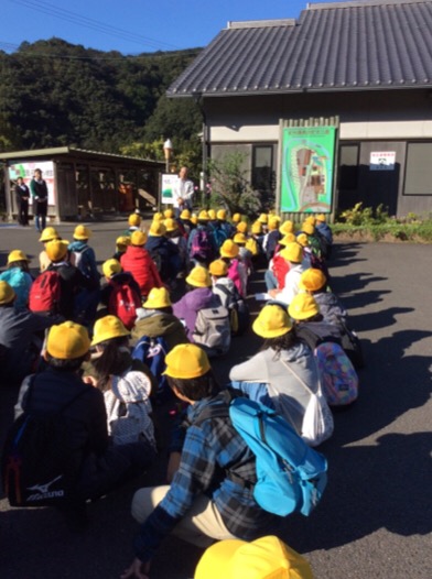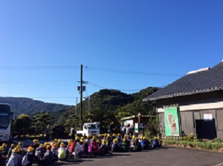 紀州備長炭記念公園に到着しました。これから、クラスごとに窯だし体験、梅ジュースづくり、資料館見学、ウッドペインティング体験をしていきます。