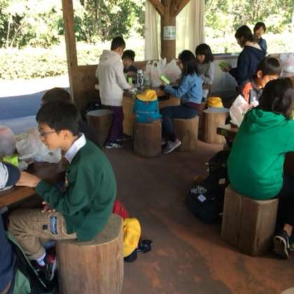 資料館の見学を終えて、公園内でお弁当を食べました。この後、バスに乗って天神崎に行って磯観察をします。