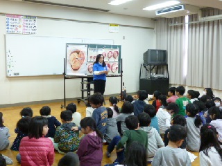 2年生が生活科の学習で『いのちの わ 授業』を行いました。赤ちゃんが生まれてくるまでを図を使って説明してもらった後、実際にお招きした最近出産された方に、出産にまつわる話や赤ちゃんの様子について直接話してもらいました。