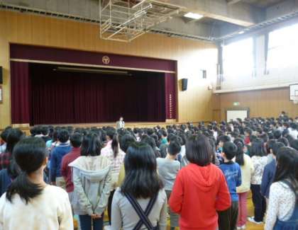 講堂で3学期の始業式を行い、3学期が始まりました。始業式では今年初めて、『校歌』を気持ちよく歌いました。