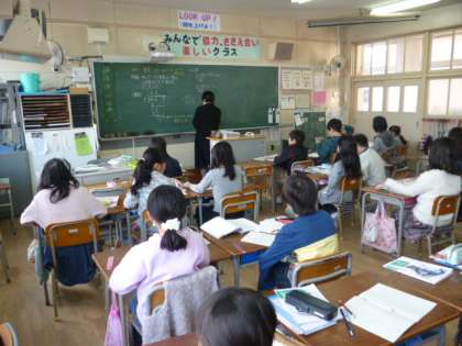 4年生は、習熟度別少人数学習で『小数の割り算』の単元を学習しています。どのコースも、1クラスごとの人数が普段の学習よりも少ない人数で学習しています。