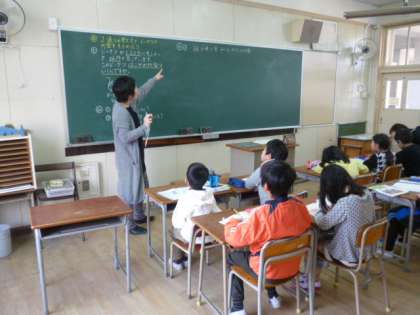 今週、3年生は算数のかけ算の単元で、学年を3つのグループに分けて、習熟度別少人数学習をしています。1クラスの人数がいつものクラスよりも少ないので、発言する機会も増えています。