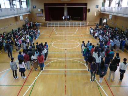 今日の児童集会は、土曜日に行われる『卒業を祝う会』の合同練習をしました。在校生全員から歌のプレゼントなどの練習をしました。