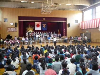 修了式が終わった後、2年生と4年生が学年発表をしました。