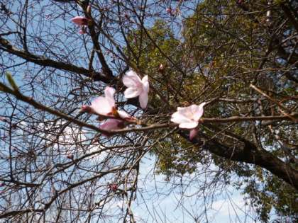 ここ数日の日中の日差しで、校庭の桜のつぼみが大きくなり、少しずつ花が咲いてきています。