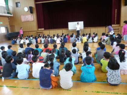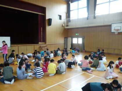 金曜日の遠足でする縦割り班活動について、3・4・5年生が講堂で話し合いました。5年生をグループのリーダーにして、オリエンテーリングのことや縦割りグループでの遊ぶ内容について決めました。