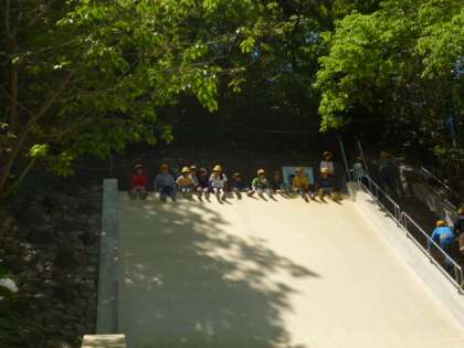 お弁当を食べた後、やんちゃの里で活動しました。今日は、他の学校が来ていなかったので、のびのびと活動することができました。すべり台などの遊具で思いっきり遊べました。