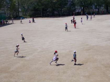今日は、3・4・5年生が遠足に行っているため、昼休みの運動場は、とてもすいています。