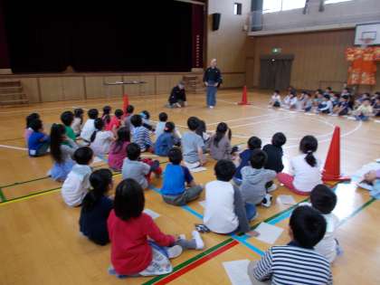 〈一般財団法人 能楽堂嘉祥司閣〉からゲストティーチャーに来ていただきました。3時間目は1・2年生、4時間目は3・4年生、5・6時間目は5・6年生に、それぞれ能楽の紹介や実演指導をしていただきました。