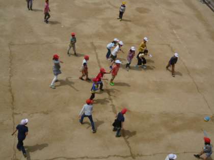 どの学級も『クラス遊び』をしています。今日は、1・2年が遠足なので、運動場を広く使えてのびのびと活動することができました。