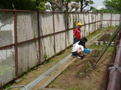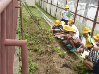 4年生は、先週植えた『へちま・ひょうたん』を観察しています。一週間で、成長した様子を葉の数やくきの伸びの変化で確かめていました。