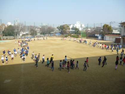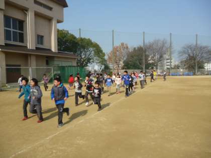 先週から体力づくりの一環として、1時間目、4時間目の業間にかけ足を行っています。