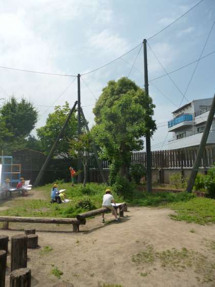 4年生は、校内にある木々を写生しています。コンテを使って、木の枝を一本、一本丁寧に描いています。