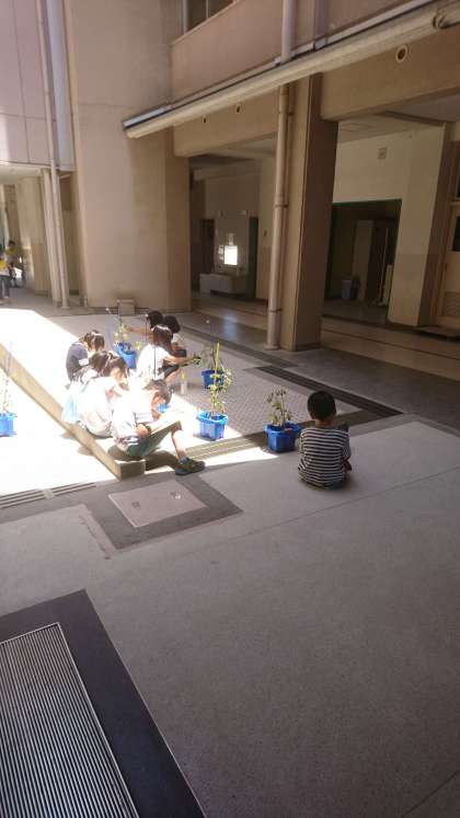実が熟したら、持って帰ろうと、子どもたちは、楽しみにしています。