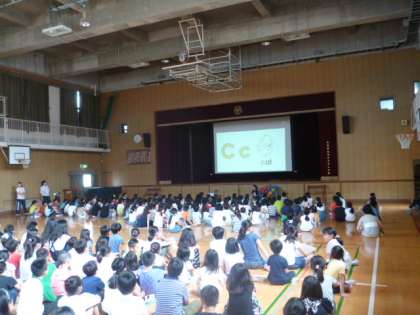 今日も児童集会の後、英語で楽しく歌を歌いました。児童は、大きな画面を見ながら楽しく歌っていました。