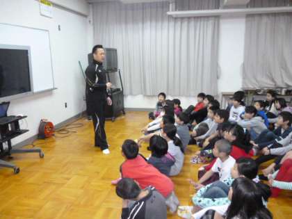 出身地のカナダの話、趣味の話など、英語でお話ししていただきました。映像も用意していただいていたので、みんなにもよくわかりました。