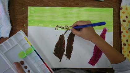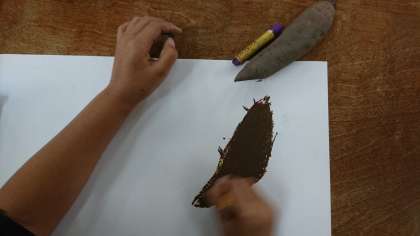 昨日、収穫したさつまいもの絵を描きました。