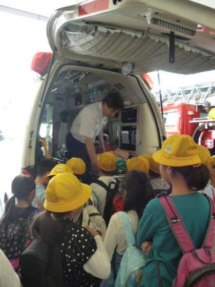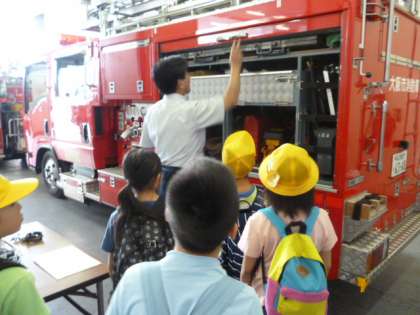 4年生は、西成消防署に社会見学に行きました。消防署の施設や働いている人々の様子を見学しました。
