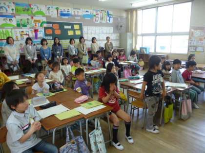 2年生は、「かくれんぼ」〜班ごとに音読発表会をし、友達の音読のよさを見付けよう〜の学習を行いました。
