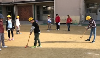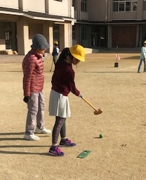 12月7日(木)、晴寿会の方に来ていただき、5年生がグランドゴルフをおこないました。各クラス、グループ別で7ホールを回りました。最初は、ボールの打ち方に慣れてなくて、苦労していましたが、だんだんと打ち方のコツがわかってきて最後まで楽しんでできました。グランドゴルフを通して、子ども達と晴寿会の方と親交を深めることができました。