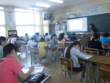 5年生を3つのグループに分けて学習しています。1グループあたりの人数も少なく、より細やかな学習活動を行っています。
