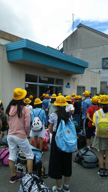 11時すぎに琵琶湖青少年の家に到着し、入所式のあと、避難訓練をしました。