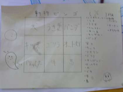 各班に分かれて、ビンゴカードに動物を記入していきます。