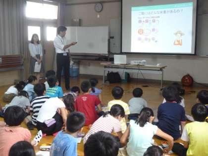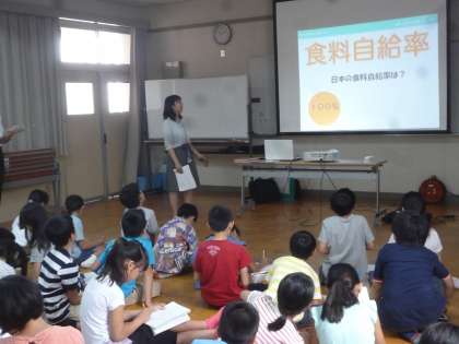 野菜クイズやお話を通して、大阪の特産物や食料自給率について、わかりやすく説明していただきました。
