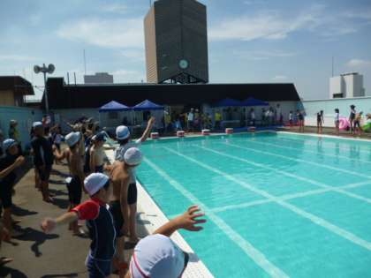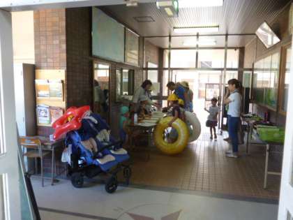 PTA親子プールがありました。朝早くからPTAの方々が準備をしてくださりました。とても暑い中、たくさんの子どもや保護者の方が来て、楽しい時間を過ごしました。