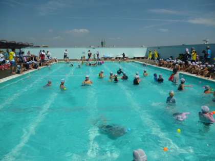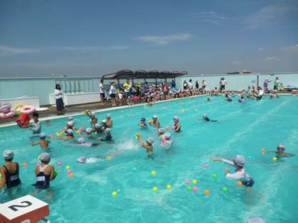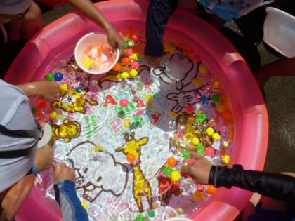 「スーパーボールすくい」「水中玉入れ」のようすです。