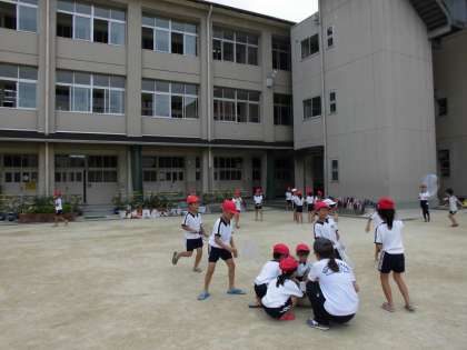 1年生が、どろんこ遊びとシャボン玉遊びをしました。