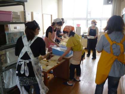 まず、晴明丘小学校の栄養教諭の東先生に、「カルシュウム」についてのお話しをしていただきました。その後、参加者で配膳をし、給食の試食を行いました。