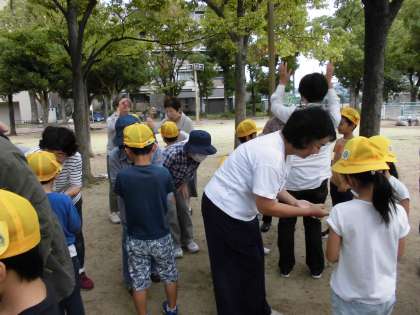 清掃の後、「おちゃらか」などの手遊びをして、交流を深めました。