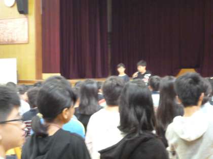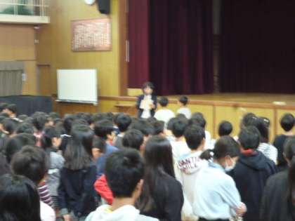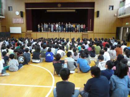 校長先生のお話、図工作品で表彰された児童の紹介、6年生から千羽鶴協力のお礼、後期運営委員のあいさつがありました。