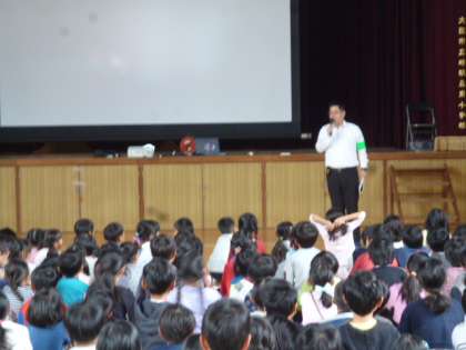 2時間目に防犯教室を行いました。阿倍野警察署の方に来ていただき、