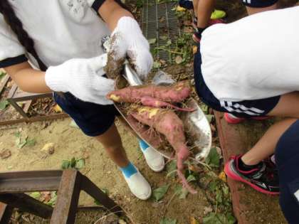 土を掘っていくと、大きなお芋がたくさん出てきました。例年以上の大収穫に子どもたちも大喜びでした。