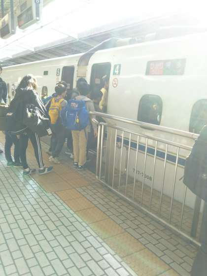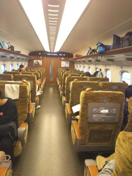 新幹線は、団体専用列車でした。一車両貸しきりになっている上に、とっても豪華な座席!