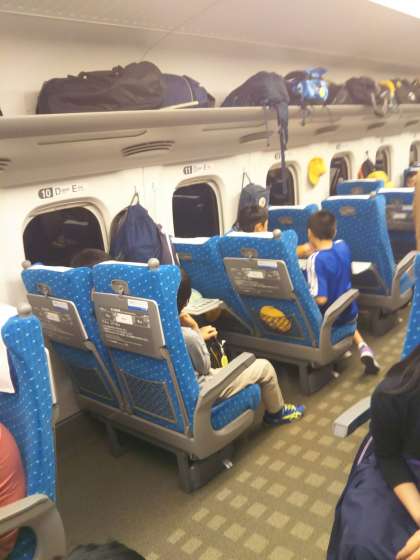 帰りの新幹線は、一般のお客さんも乗っている車両なので、マナーを守って過ごします。