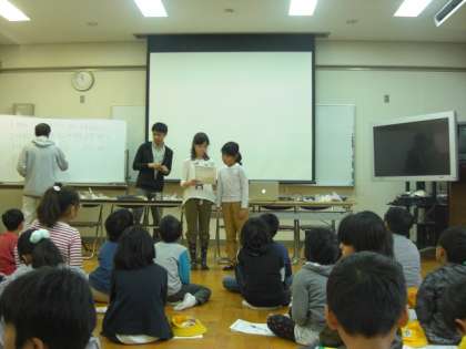 多目的室では、調べたことの発表をしたり、ゲストティーチャーのお話を聞いたりしました。