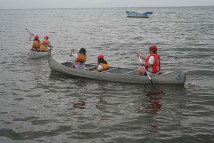 琵琶湖でカッター訓練やカヌー体験をし、琵琶湖の日本一の広さを感じました。昨年の林間学習の経験を生かし、バスレク、キャンプファイヤーなど係の児童を中心に、みんなで協力して盛り上がりました。