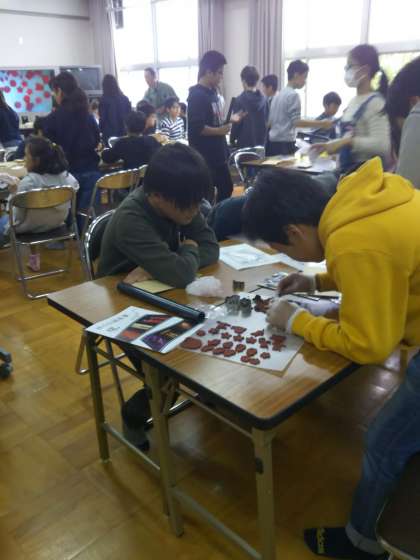 伝統工芸の職人さんから、お香の歴史や作り方などのお話を聞いたあと、実際にお香の原料をのばして型抜きで形を抜いたり、粘土のようにこねて形を作ったりして、マイお香を作りました。